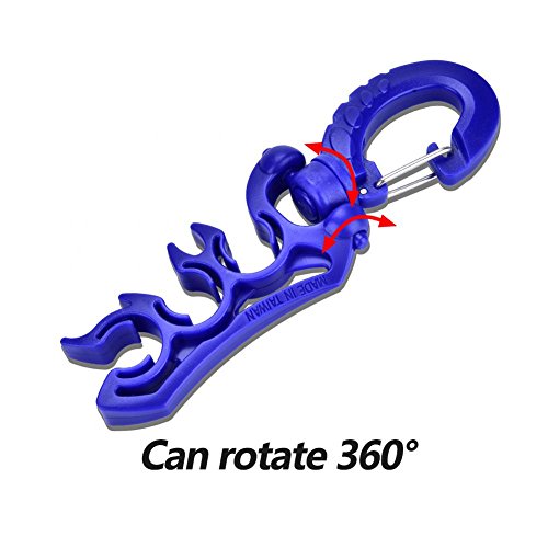 Knoopontwerp: deze slanghouder heeft een eenvoudig knopontwerp, hij kan gemakkelijk aan uw BCD-buis hangen, kan worden gedraaid en gevouwen, 360 graden draaibaar en moeiteloos.