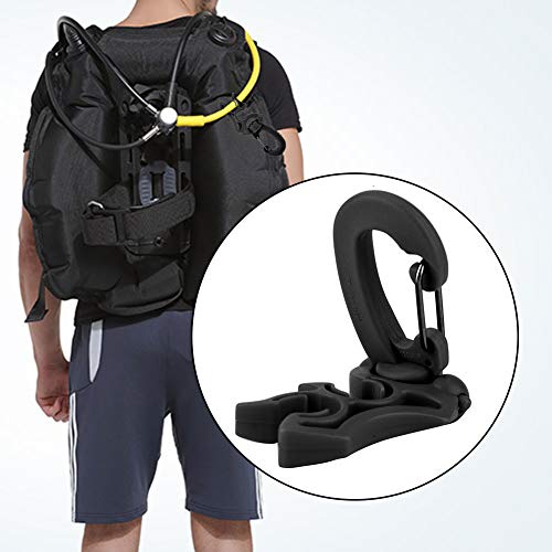Bevestig de reservekop aan de BCD en kan snel worden gedemonteerd en gemonteerd. Capaciteit voor maximaal 2 slangen: perfect voor het vasthouden van flexibele, regelaars en manometers bij laag/hoge druk. Helpt je apparaat te beschermen en het daar te houden waar je het nodig hebt. Eenvoudig klikdesign. Hang gewoon je BCD flexibel 360 graden gedraaid en kan worden gebogen. Zeer nuttig om de flexibele onderwateruitrusting stabiel te houden, zodat ze niet bewegen. Materiaal van hoogwaardig PP, 2 sleuven voor slangarm van roestvrij staal 304, langdurig gebruik is niet gemakkelijk te roesten.
