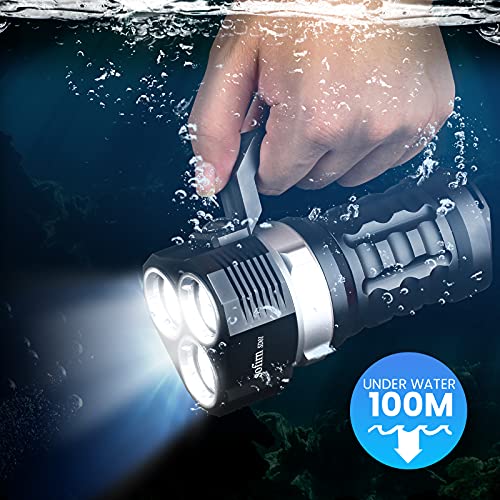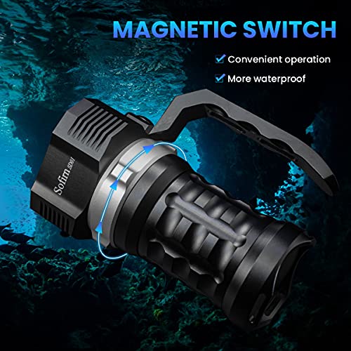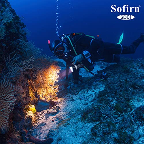 Sofirn SD01 Professionele duiklamp, zaklamp, snorkelen, 100 m, onder water, 6000 lumen, krachtig met 4 lichtniveaus, 3 x SST40 led 5000 K met 4 x 18650 oplaadbare batterijen