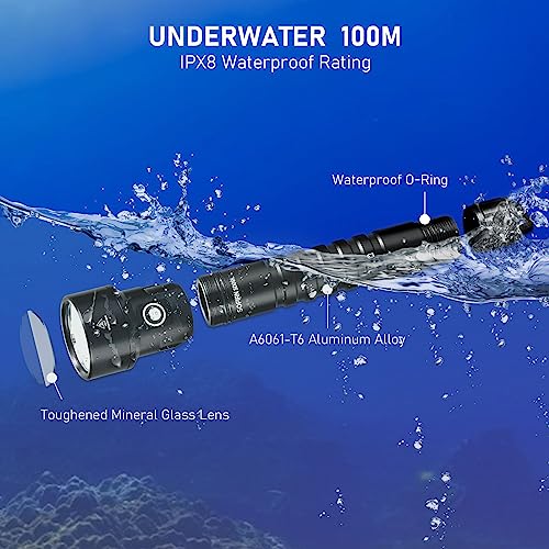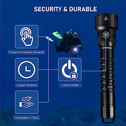 Super heldere duikzaklamp: de Sofirn SD09L is super heldere led-zaklamp, maximaal vermogen heeft 6800 lumen, max. Beamshot bereik van 542 meter wanneer hij op 2 oplaadbare batterijen wordt gebruikt.