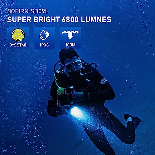 Sofirn SD09L duiklamp, 6800 lumen, led-zaklamp, extreem helder, duikzaklamp, 100 m onderwaterled met 3 x SST40, IPX8 professioneel waterdicht met oplaadbare accu’s