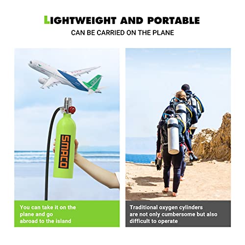 Specification: SMACO Scuba Tank Zuurstof Cilinder Duiken Gear voor Duiker Mini Scuba Tank met 15-20 minuten Mogelijkheid Duiken Zuurstof Onderwater Ademhalingsapparaat 1L Duiken & Snorkelen Apparatuur