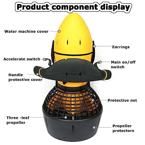 â—‰De duiker wordt altijd beperkt door de luchttoevoer en wordt op weg naar de onderwaterbestemming belast door zwaar sleepmateriaal. Elektrische onderwaterscooters zijn een geweldige manier om persoonlijk energieverlies te verminderen en de duiktijd te verlengen. Onderwater elektrische scooters zijn een geweldige manier om persoonlijk energieverlies te verminderen en de duiktijd op de gewenste bestemming te verlengen./>/>â—‰Productspecificaties:/>Naam:Onderwater Propelle Scooter/>Kleur: Geel/>Vermogen: 300W/>Snelheid: 4.8 KM/H/>Maximale diepte: 30 meter (100 voet)/>Gewicht eenheid: 7,5 kg/>Gewichtscapaciteit: 100 kg/>Oplaadtijd batterij: 4-5 uur/>Batterij: loodaccu 6AH, 24V Loodzuur batterijen/>Machinelooptijd: 40 minuten – 1 uur (afhankelijk van snelheidsinstelling)/>Toepasselijk toepassingsgebied: speeltuin, zwembad, rivieroever, meeroever, ondiepte, vijver, badzwembad/>/>â—‰Include:/>1x Underwater Sea Scooter/>1x Oplader/>1x 24V 6AH Loodaccu/>1x Handleiding/>/>â—‰Instructies:/>1. Houd de bedieningshendel na het te water gaan met beide handen vast./>2. Gebruik twee ellebooggewrichten om op de staart van de machine te drukken om de hoogte iets lager te maken dan de kop van de machine./>3. Zet de staart op de borst en houd deze vast met zwemringen/>4. Houd de startschakelaar met uw rechterhand ingedrukt om de propeller aan te zetten./>5. Ontspan langzaam beide armen en druk op de staart van de machine om niet naar de oppervlakte te komen./>6. Terwijl de machine mensen aanzet tot rennen, worden beide benen langzaam naar achteren geheven./>7. De machine draait normaal in het water en is volledig in lijn met mensen./>8. Draai de startschakelaar los met uw rechterhand en de machine stopt met draaien./>9. Je kunt duiken en zwemmen, zwemmen is leuker, duiken is spannender en andere uitrusting dan producten moet je zelf voorzien.